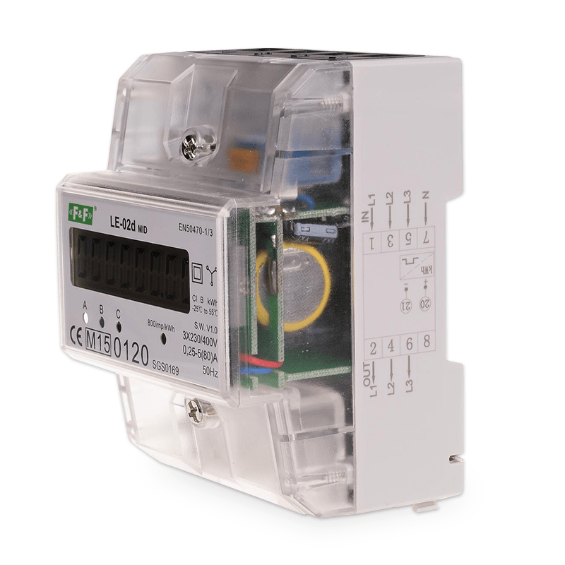 Trojfázový digitálny elektromer LE-02d MID pre striedavé napätie je určený k meraniu činnej elektrickej energie v priamom zapojení do obvodu, na podružné meranie spotreby samostatných spotrebičov alebo spotrebičov v skupinách.
